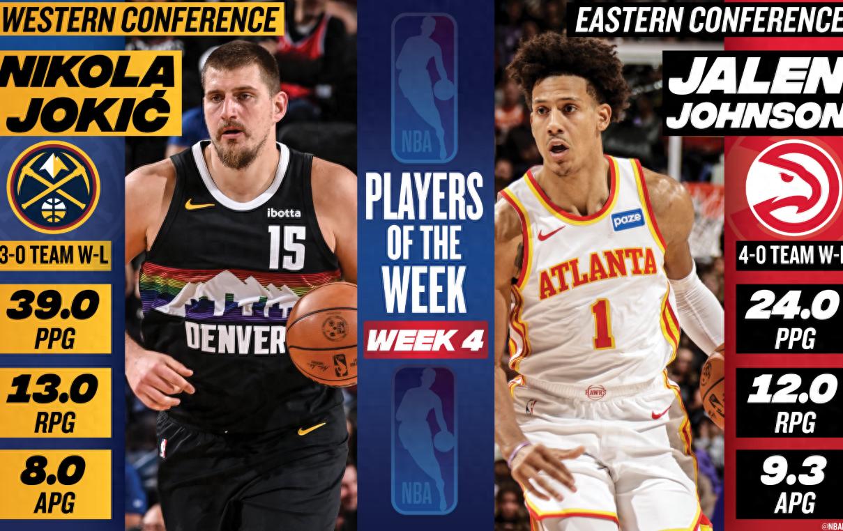 周最佳:约基奇场均39+13+8蝉联,东契奇哈登获提名