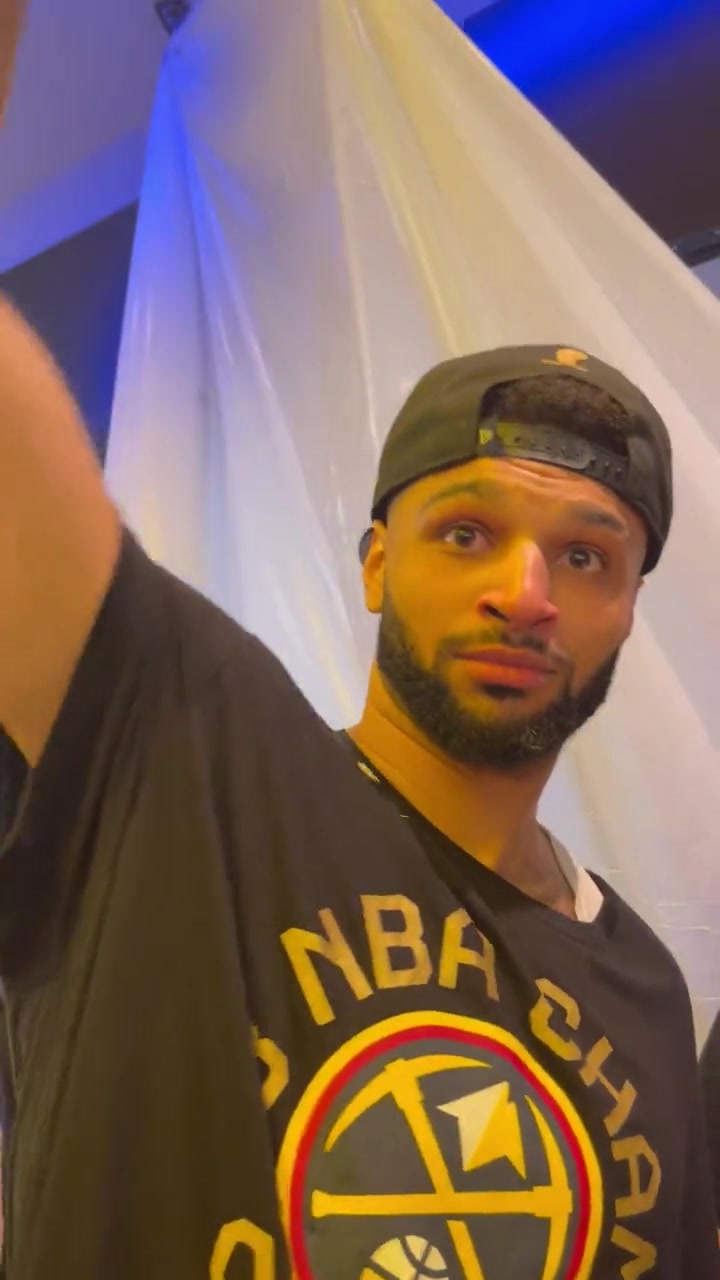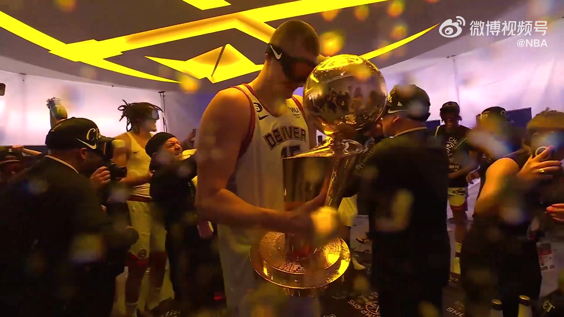 两座金杯闪闪发光穆雷和约基奇夺冠游行上一人带一座奖杯